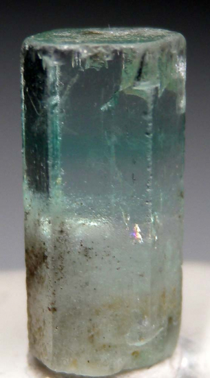 Terminated single Emerald crystal from recent finds in Nigeria. Highly transparent and glassy with color zoning. Complete all around and undamaged with a smooth, flat termination. Weighs 0.97 grams. Note that these do not photograph well - this is much better than the photos would indicate! Much more bright, transparent, and glassy. |