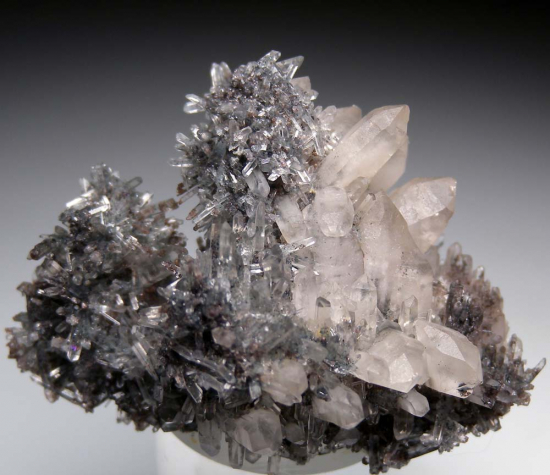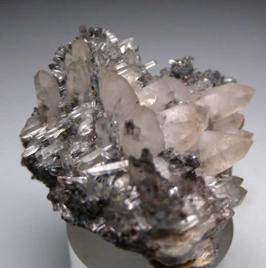 Cris-crossing Quartz crystals known as 'Gitter Quartz' (a German name for fence or lattice Quartz). The Quartz crystals form epitaxially on Feldspar crystals in a lattice of crystals. The Erongo Mountains region is the one of the only localities that produces this style of unusual Quartz specimens. |