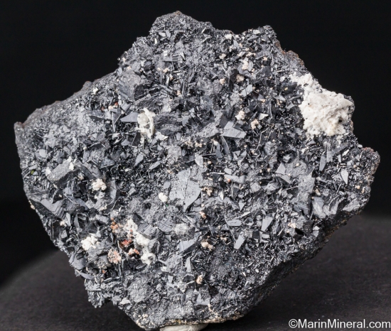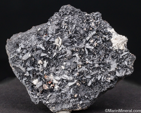 Black bipyramidal crystals of Braunite II from the Kalahari Manganese fields of South Africa. Good sized specimen of this rare species with crystals to 1cm. Associated species include Kutnohorite and Andradite. Ex. Erich Laskowski collection. |